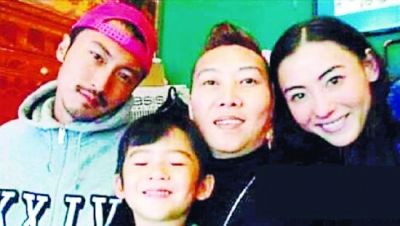 謝霆鋒與張柏芝、Lucas一家三口合照,中間為風水師好友Mike。(資料圖)